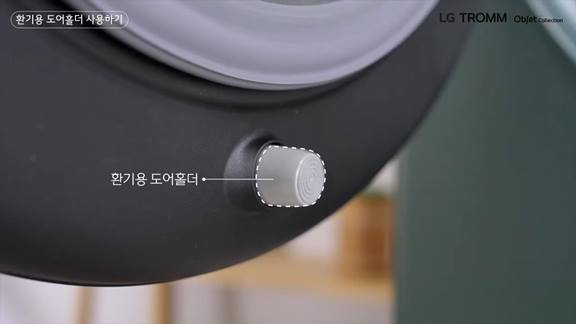 건조기 사용 후 냄새를 위해 문을 꼭 열어두셔야 합니다. 건조기 통을 환기할 때는 환기용 도어홀더를 이용하시면 편리합니다. 문을 밀어서 완전히 닫지 말고 자석이 붙을 때까지 살짝만 문을 닫으면, 환기용 도어홀더는 자석이 내장되어 있어서 문을 일정간격으로 열어두실 수가 있습니다.